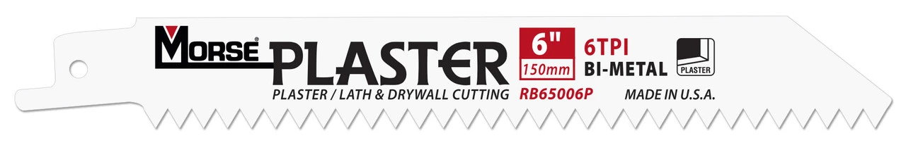The Morse PLASTER reciprocating saw blade is specifically designed for cutting drywall, plasterboard, and plaster with wood or metal lath. With a ĀVĀ style tooth, cut edge fraying/chipping is significantly reduced, requiring less finishing.